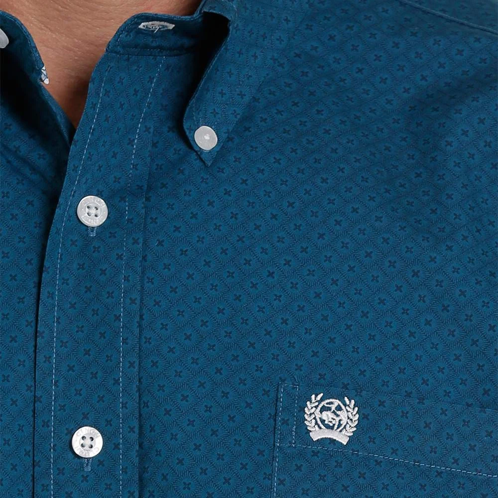 Step out in style wearing our teal, tonal print buttondown by Cinch.