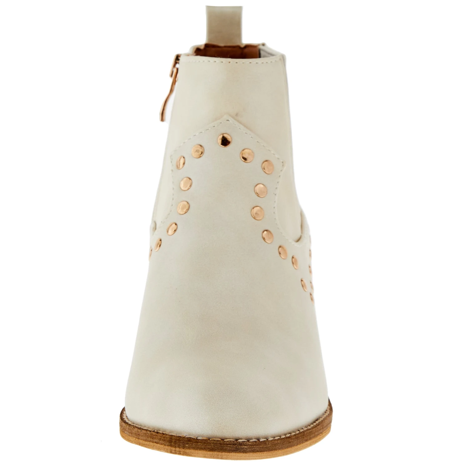 - Gold stud accents