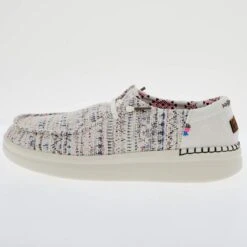 Our iconic low-top moc with a little extra height and a little extra cushion. The Wendy Rise collection is still super lightweight and comfortable. Built with a soft, linen-blend upper, an ultralight outsole and designed with our easy-on system featuring no-tie elastic laces. Finished off with contrasting textures and hand-stitched details at the heel.