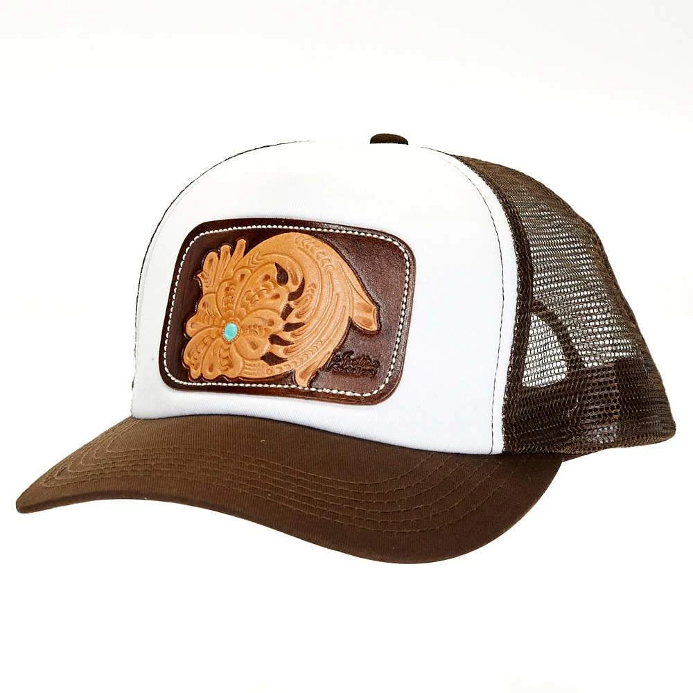 Add some style to your wardrobe wearing our natural Floral Tooled, Leather Patch cap by McIntire Saddlery.