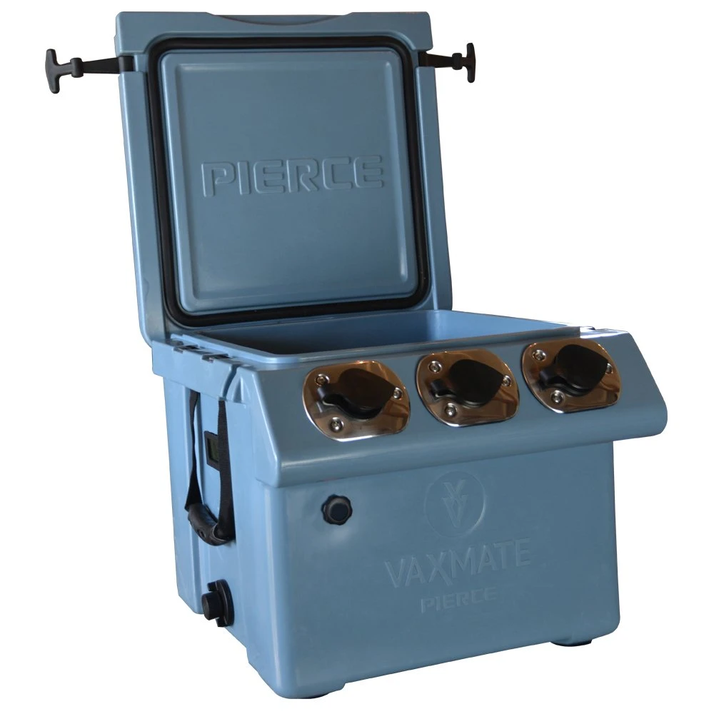 Protect your herd and investment with the PIERCE VaxMate. Manufactured by ranchers for ranchers and veterinarians, VaxMate keeps your vaccines between 35.6 – 44.6 degrees Fahrenheit in the summer or winter.