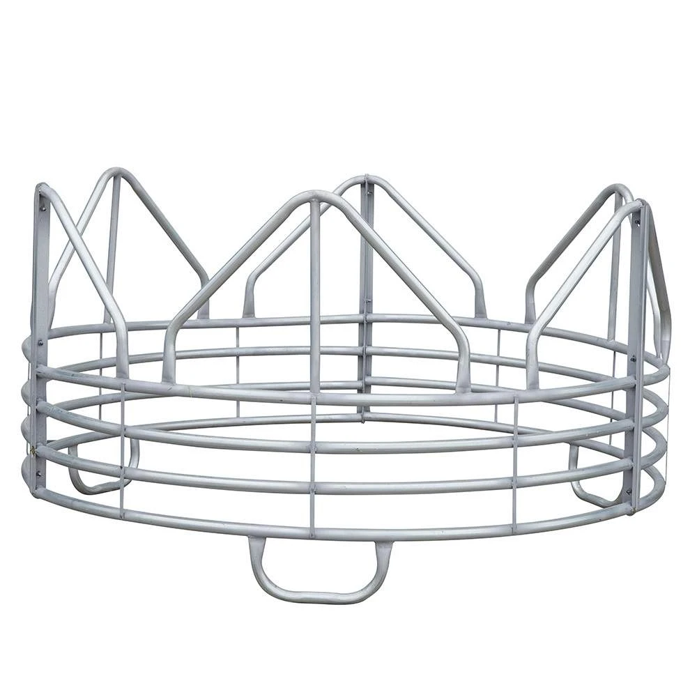 Designed to be free of head and foot traps, the Heavy Duty Round Bale Feeder is ideal for feeding round bales of hay to your horses. This feeder serves to decrease decrease hay loss. The smooth, rounded top loops prevent horses from rubbing their manes. The Galvanized Finish helps the product resist rust and corrosion to add years of life to your investment.