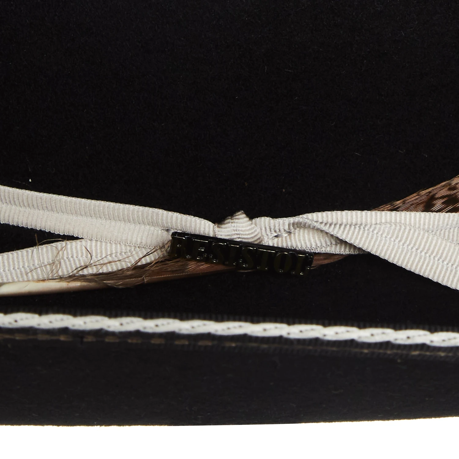 Apart of the Tuff Hedeman Collection with Resistol, this 4X Black Snake Eyes Felt Hat looks sharp with its bound-edge and cream accents!