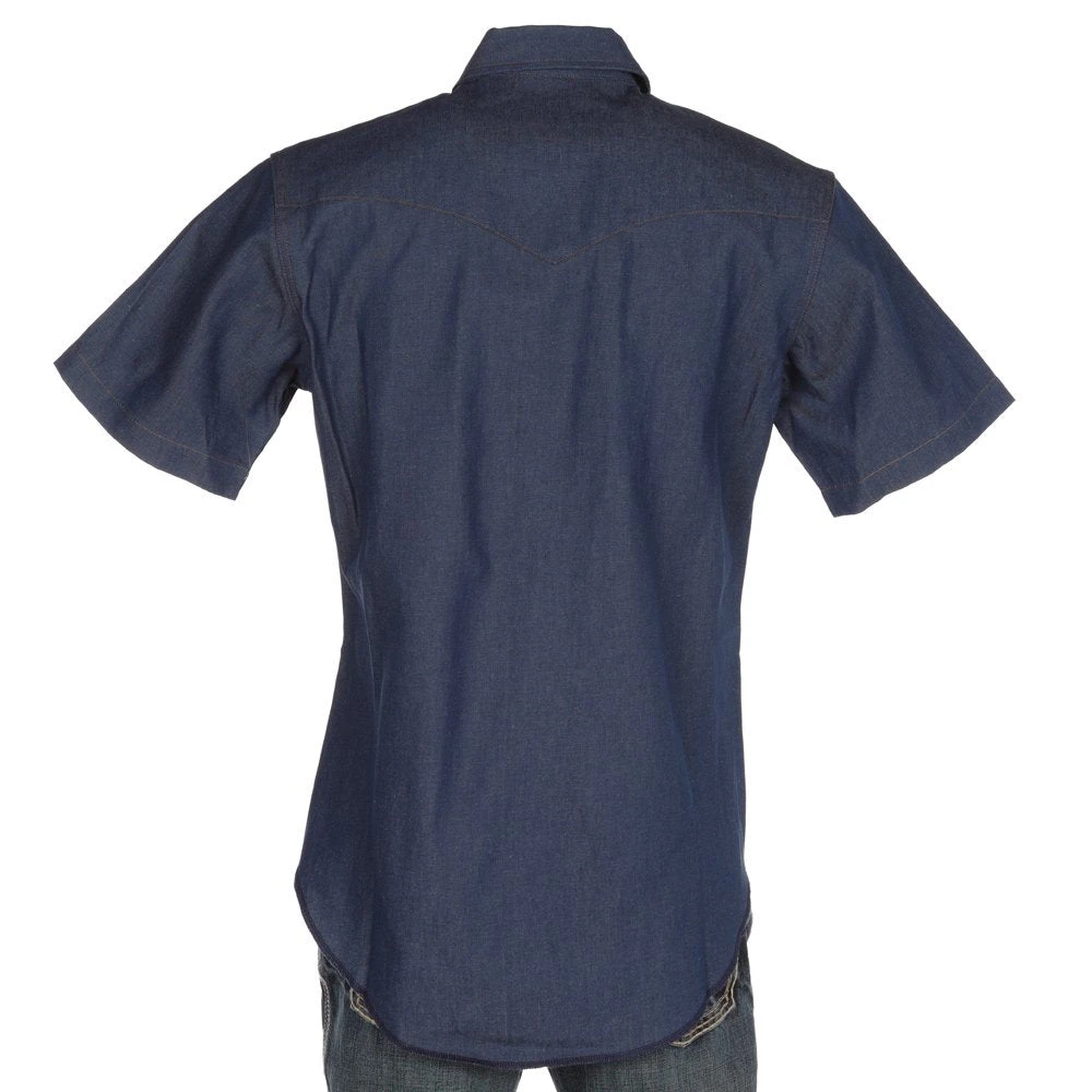 Add some style to your wardrobe wearing this denim, short sleeve, snap shirt.