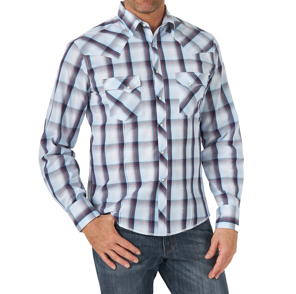 Get your cowboy to ride in style in our blue/red plaid shirt from Wrangler!