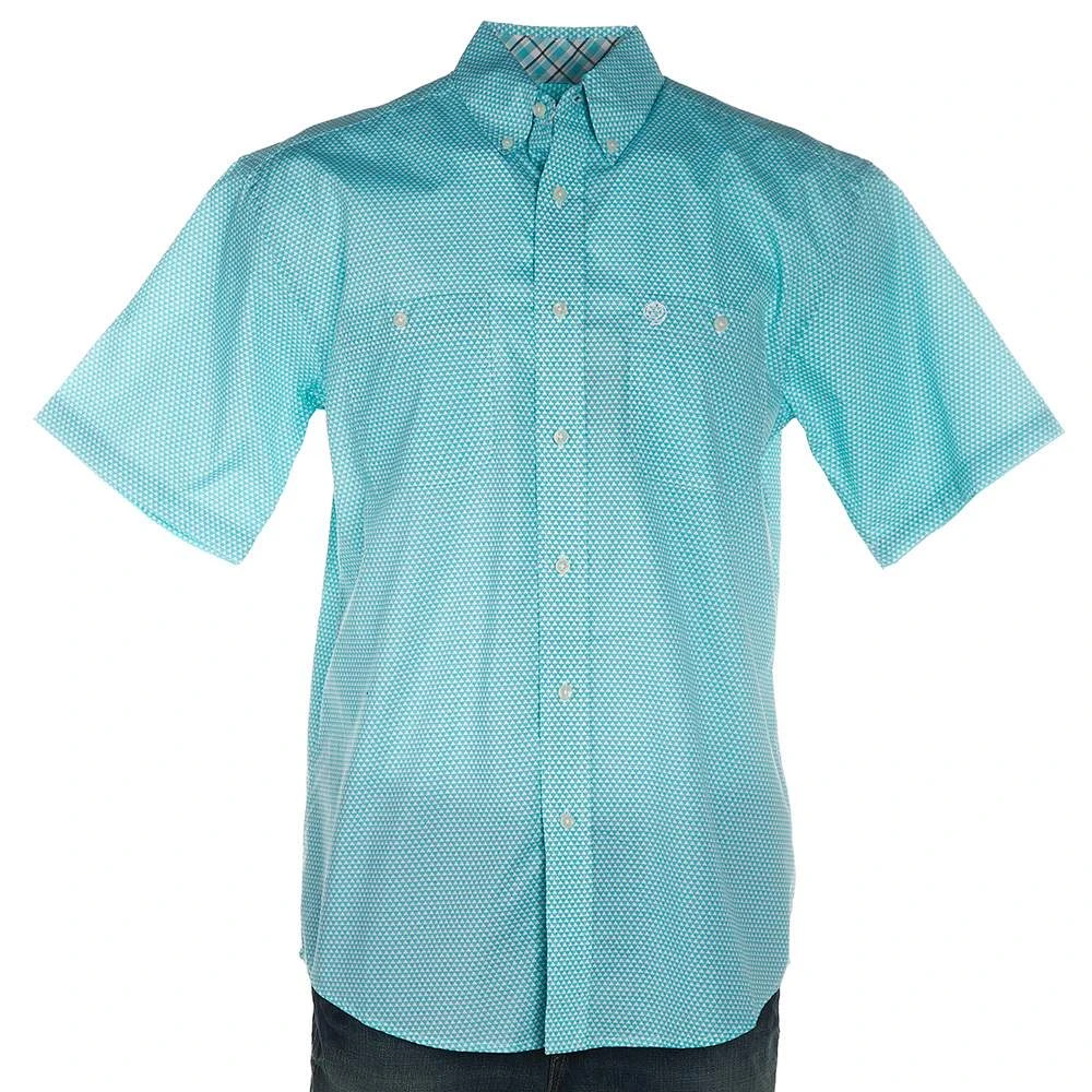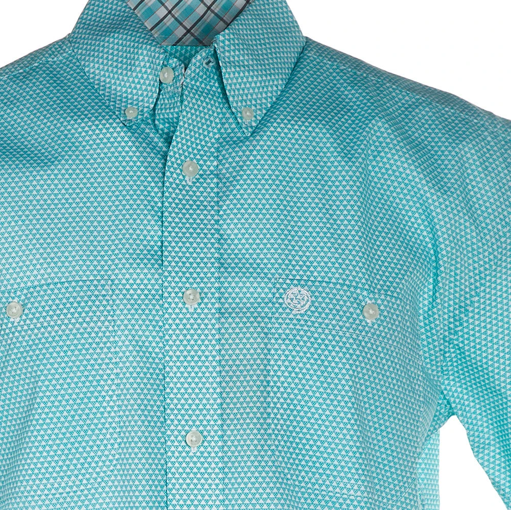 Go for a casual look wearing our turquoise triangle printed buttondown by Wrangler George Strait.