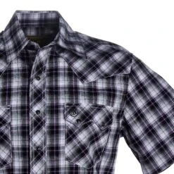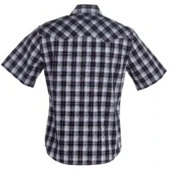Hold onto quality when you put away those winter layers. This Wrangler Retro premium plaid short sleeve features a tailored fit, Western yokes, and attractive stitching for that something extra. Made with 100% cotton poplin to retain its shape even with daily wear.